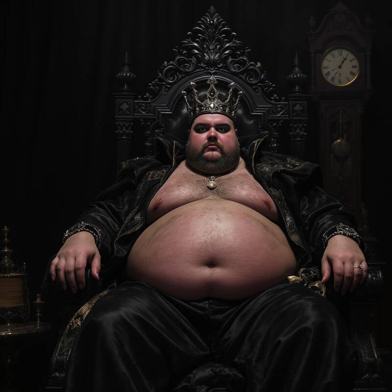 Like the other chambers it contained no windows and no light. There was an ebony grandfather clock against the far wall. Prosperous gnawed on the bones of the deceased, swelling himself bigger and fatter. He waited impatiently for some courtier from another chamber to fall victim to his temptations and desires. He consumed his peers the same as he had consumed his citizens, and his lands previously. He was the fattest man left on the Earth and he was still growing.